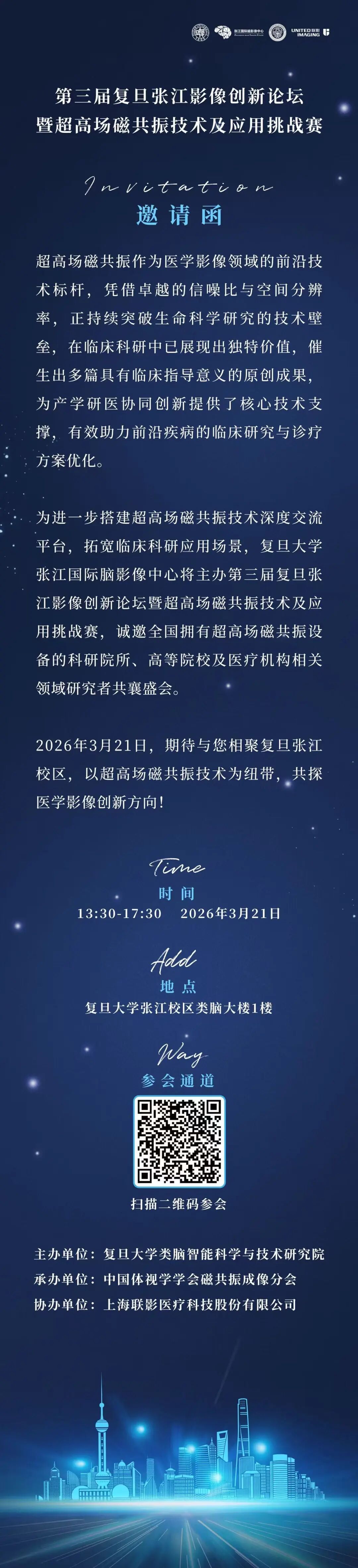 参会通知 | 第三届复旦张江影像创新论坛暨超高场磁共振技术及应用挑战赛